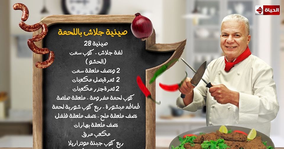 طريقه عمل صينيه الجلاش باللحمه المفرومه بطريقه الشيف حسن من برنامج اكلات وتكات على قناه الحياة الشيف حسن