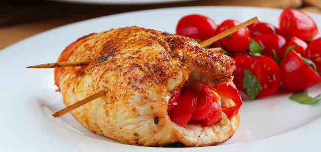 طريقة عمل صدور الدجاج المحشية بالجبن الموزاريلا والطماطم Just Food